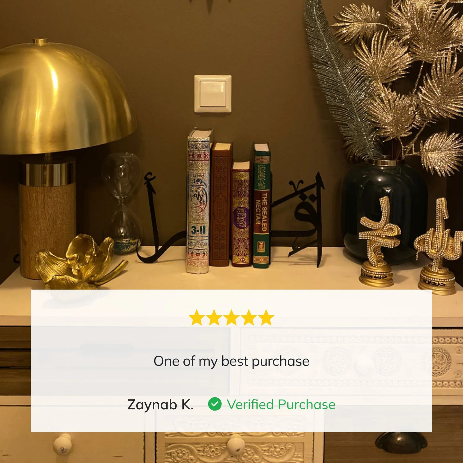 This piece, adorned with Islamic calligraphy, not only organizes your cherished reads but also infuses your space with peace and reverence. It’s a perfect addition to Islamic home decor, serving as an inspiring Muslim gift. Enhance your Ramadan decorations and celebrate Eid Mubarak with elegance that resonates with faith and tradition.