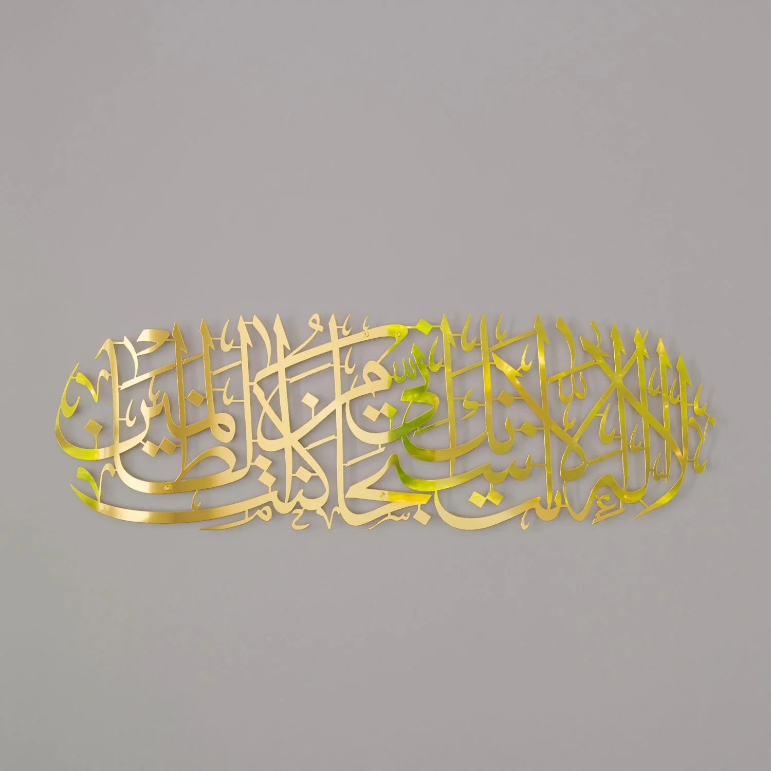 The Dua of Yunus Islamic Wall Art features the powerful verse from Surah Anbiya Ayat 87, designed in elegant metal Arabic calligraphy art. This Islamic wall art is carefully crafted from laser-cut metal and coated with a protective powder finish for a sleek and modern look. Each piece is hand-shaped to perfection, adding depth and precision to the verse’s intricate details. Ideal as Quran wall art or a unique Islamic gift, this contemporary Islamic wall art decor is perfect for anyone seeking both spiritual inspiration and aesthetic appeal.