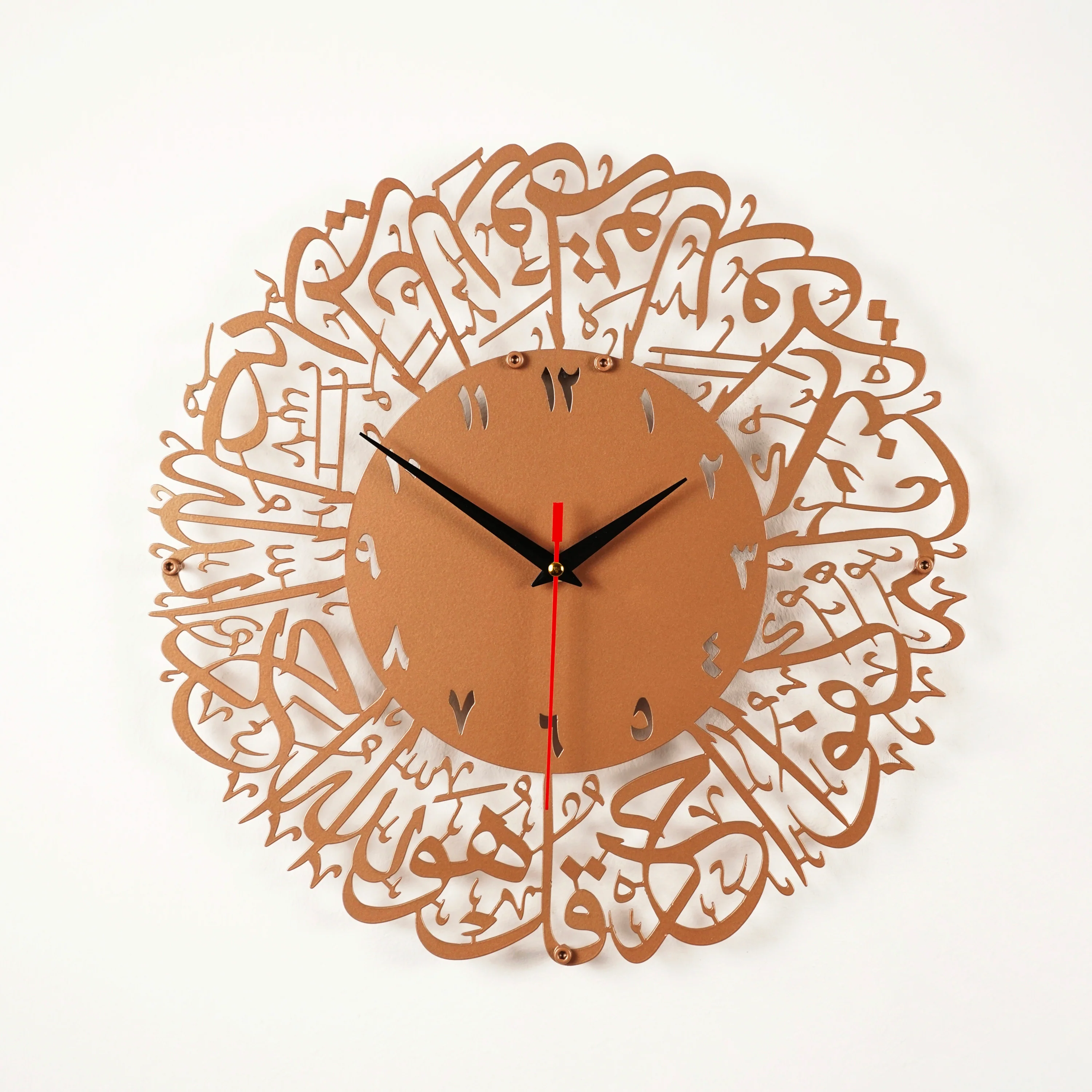 Surah Al-Ikhlas Arabic Calligraphy Wall Clock - Metal Islamic Home Decor, Copper